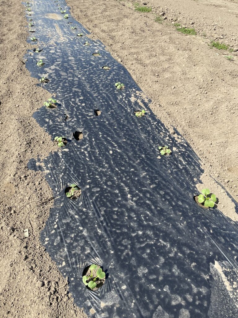 土作りを行い、マルチシートを敷き、大根の種を蒔きました☺